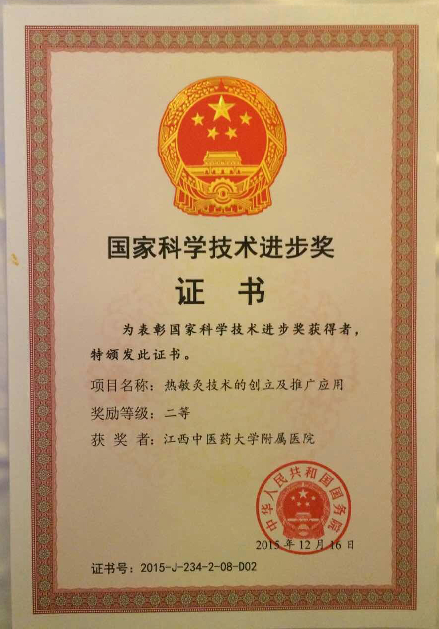 热敏灸技术是江西中医药大学附属医院具有自主知识产权的原始创新成果。本次获奖,是自2007年荣获江西省科技进步一等奖后,热敏灸技术的又一次重大收获。这也是继梁瑞宁教授参与项目“多囊卵巢综合征病证结合研究的示范和应用”获得2014年度国家科技进步奖二等奖之后,江西中医药大学附属医院再次获得该奖项。