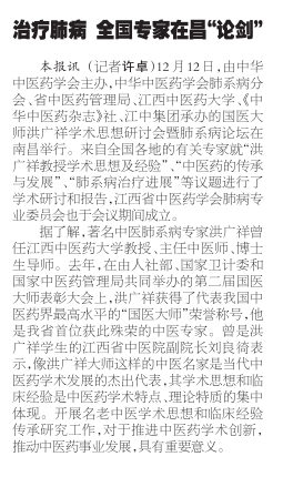 江西日报:治疗肺病 全国专家在昌“论剑”