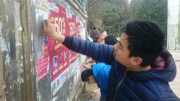 本报讯(通讯员 罗昭娜 王麒)3月4日,灸学院开展了学习雷锋精神活动,青年志愿者们在清晨凛冽的寒风下早早的就起了床,一群志同道合的人相约在校园的角落。当同学们还在睡梦中时,他们正拿着自己的毛巾刷子和一些自己的生活用品在清理假期校园被小广告污染的展板公告栏。原本干净的水变得污浊,水温也变得冰冷。但是不变的是学习雷锋的清澈心灵,不变的是学习雷锋滚烫的热情。