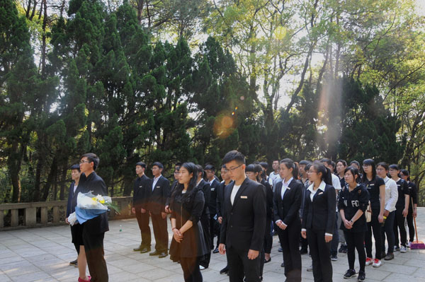 (罗昭娜王麒)4月1日,灸学院组织广大师生开展形式多样的“我们的节日-清明节”主题活动。近百名师生怀着一颗敬重的心来到方志敏革命烈士陵园区祭奠伟大的革命先烈方志敏广大师生瞻仰革命先烈。返校后,师生们积极倡导低碳环保的绿色祭祀理念,在网上祭奠英烈、网上献花,寄语留言,表达心声,引导同学们在慎终追远、缅怀先辈的情怀中认知传统、尊重传统、继承传统、弘扬传统,以实际行动践行社会主义核心价值观,不断增强爱党、爱国、爱社会主义的理想信念。