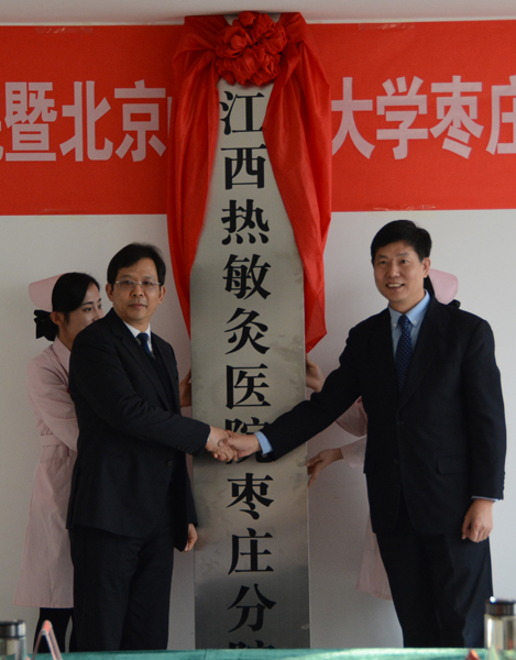 12月21日上午,我院在省外合作兴办的第一家热敏灸分院——江西热敏灸医院枣庄分院暨北京中医药大学枣庄医院灸疗中心在枣庄市中医院正式揭牌开业,标志着江西热敏灸医院“热敏灸+”计划正式在枣庄市中医院启动。枣庄市政府副秘书长张峰、市卫计委主任马守玉、我院副院长陈日新以及枣庄市中医院领导班子成员、相关职能科室负责人和针灸科医师代表出席了揭牌仪式。我院党委书记刘中勇致辞并与枣庄市中医院院长王成祥共同为江西热敏灸医院枣庄分院揭牌。